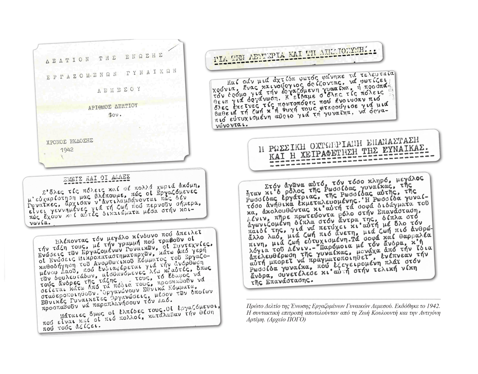 Στο μεταξύ το ΚΚΚ μετονομάζεται, το 1941, σε ΑΚΕΛ με στόχο την ευρεία οργάνωση των λαϊκών στρωμάτων ενώ την ίδια χρονιά ιδρύεται η Παγκύπρια Συντεχνιακή Επιτροπή, η μετέπειτα ΠΕΟ, που συστηματικά και οργανωμένα παλεύει για τα δικαιώματα των εργαζομένων. Λίγα χρόνια αργότερα ιδρύεται και το Γραφείο Γυναικών Εργατοϋπαλλήλων της ΠΕΟ το οποίο, συνέβαλε καθοριστικά στην περαιτέρω οργάνωση των γυναικών στο συνδικαλιστικό κίνημα και στους εργατικούς αγώνες.